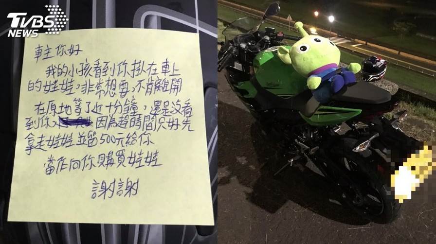 這位網友表示,自己平時就有在重機后座擺放娃娃的習慣,會根據當天的心情更換娃娃。事發當天他帶著皮卡丘娃娃上路,外出用餐時將重機停在停車場,回來時就發現娃娃消失不見,車上多了一張字條。